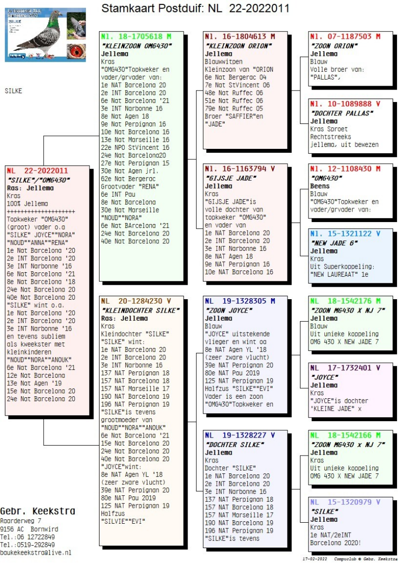 DE PRO FORMA STAMBOMEN VAN DE JONGEN 2022 ZIJN HIERBIJ AFGEDRUKT. FOTO'S VAN ALLE KWEKERS WORDEN BEGIN DECEMBER NOG GEMAAKT EN KOMEN DAARNA OOK OP DE SITE ZODAT U EEN GOED BEELD KRIJGT VAN DE OUDERS VAN ONDERSTAANDE JONGEN.