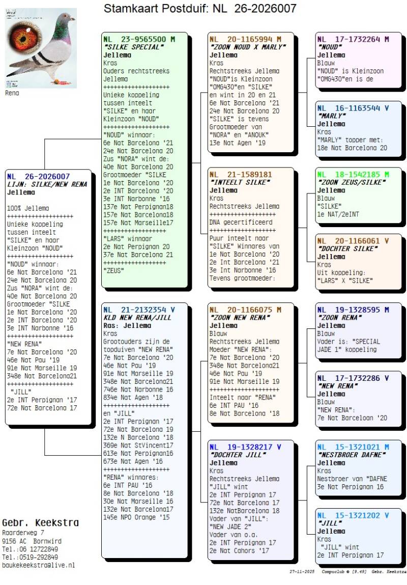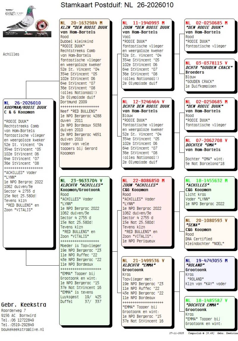 Hieronder de samengestelde koppels voor het komende jaar. Uiteraard onder voorbehoud van eventuele wijzigingen. Tevens zijn de Pro Forma stambomen van de jonge duiven 2026 hierbij afgedrukt.